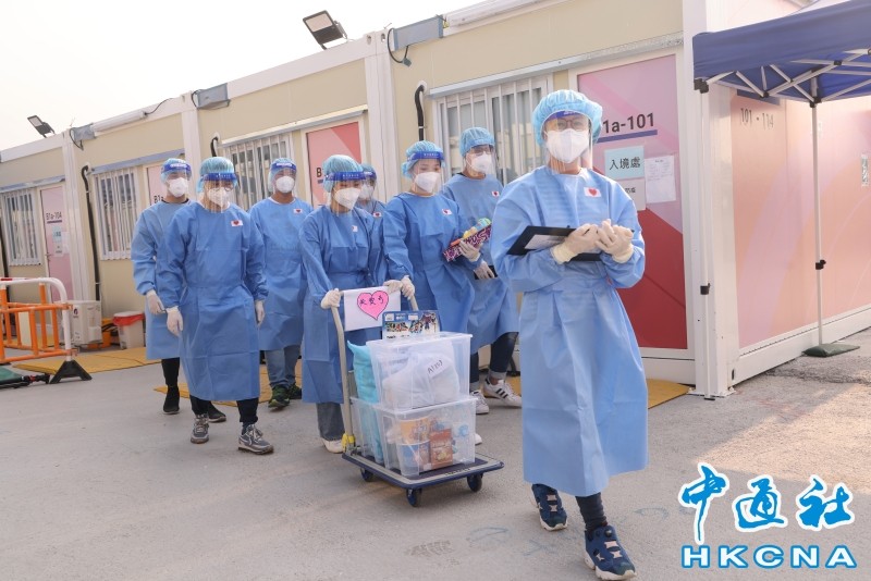 負責熱綫中心運作的陳可嘉介紹,600多間隔離房採取小區管理模式,一名熱綫專員負責大概50個房間,24小時在綫,有60多人輪班工作。她說,除了收到物資需求的電話外,也有隔離人士希望對他們講一些打氣鼓勵的話。 關愛小隊主動查找特殊需求 還有部門同時兼顧物資派發、清潔、突發狀況支援等,在隔離設施內隨時幫助需要幫助的患者。 來自中國海外物業服務公司負責防疫監督的馮茵琪對記者說,有時看到年齡大行動不便的隔離人士,他們離開房間去洗手間或浴室時,我們都會主動詢問需不需要幫助,“也不會擔心扶一下會染疫,長者肯定需要人照顧,想想自己的父母,將心比心。” 入境處還在營運的三所方艙專門設立“關愛小隊”,避免患者有需要時過於被動,工作人員每日走訪隔離區內不同的小區數次,特別關心長者、幼童、殘疾人士等,主動查找隔離人士的特殊需要,即時作出適切跟進。 “像小社區但有更多善意”,曾於新田方艙醫院隔離的港漂曾這樣描述,在工作人員的悉心照顧下,沒有感覺自己在治病,心態也變得更好了。(完) 【編輯:張明臻】