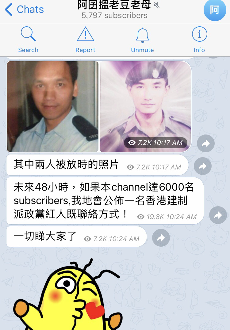 Telegram群組“阿囝搵老豆老母”起底愛國愛港人士(手機截圖) 據悉,該頻道版主曾泄露逾千名愛國愛港人士的資料,包括港府官員、總裁判官、議員等。此外,該頻道亦有39條煽惑縱火的訊息,包括有關燒夷彈的訊息,一旦有人採納或製作使用,後果不堪設想。 去年4月20日,該頻道版主涉嫌干犯“串謀煽惑他人犯縱火罪”及“串謀作出具煽動意圖的作為罪”,在區域法院被判囚3年。 另據《星島日報》報道,香港的網絡安全法,除了會著眼於個人行為,亦會從宏觀層面保障香港網絡資訊系統安全,包括一些重要基礎設施,例如政府機構、金融機構、電訊設施、水電煤及公共交通設施等。 【編輯:张琦】