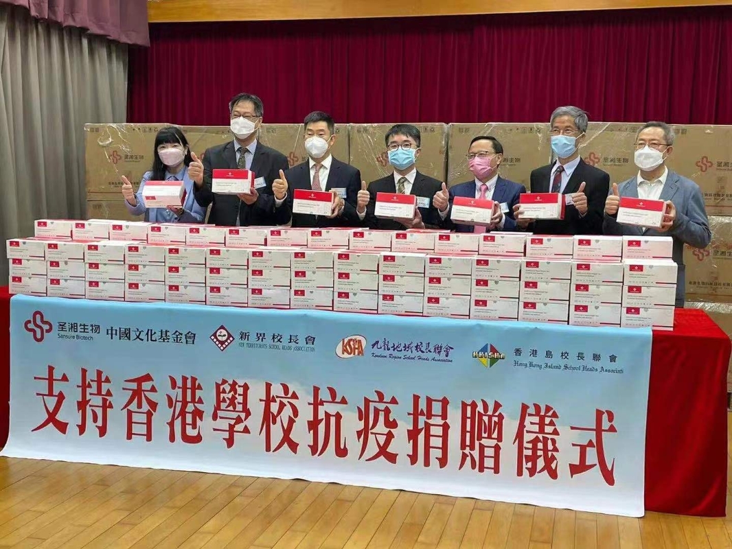香港教育局政治助理施俊輝代表香港特區政府衷心感謝湖南省人民政府以及聖湘生物公司對香港教育界的支援!他說,在習近平主席和中央的親切關懷和大力支持下,香港的第五波疫情大致穩定下來,感染個案數字逐步下降。特區政府會繼續負起穩控疫情的主體責任,不負總書記和中央對香港的期望。 中國文化基金會主席石柱表示,此次捐贈是經過前政務司司長李家超辦公室協調,安排教育局為接收單位,最終確定由新界、九龍和香港島三個校長聯會來安排物資發放。聖湘生物是國家商務部抗疫物資重點出口企業,產品獲得了社會各界好評,是信得過的良心企業。按照當前政策,複學後的學生需要每天自測,那麼快測試劑對很多孩子多、並不太富裕的家庭來說是不小的負擔,所以聖湘生物是雪中送炭體現了企業、湖南省人民政府和湖南同胞對我們香港同胞,尤其是對香港孩子的大愛。 受贈方代表、新界校長聯會主席邱少雄表示,聖湘生物為抗擊新冠肺炎疫情做出了重大貢獻,得到國家衛健委的高度認同。感謝聖湘生物捐贈的高質量新冠抗原檢測試劑,我們新界、九龍和香港島三個校長聯會將會安排把試劑分送給全港學校,緩解學生自我檢測的急切需求,讓學生們感受來自聖湘生物的關愛。 中國文化基金會的“學生抗疫支持計劃”旨在募集抗疫物資支持香港學生和學校抗擊新冠疫情。到目前為止,已經募集並捐出(包含此次在內)的物資價值已超過1千萬港元。 (完) 【編輯:陈卓仪】