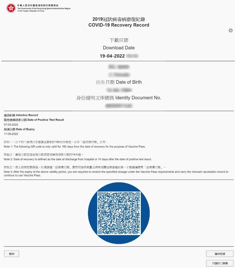 香港新聞網4月21日電 香港第五波疫情下已有逾118萬人染疫,特區政府近日推出“康復紀錄二維碼”,康復者可用作取代疫苗接種紀錄,進入須使用“疫苗通行證”的處所,截至昨日(20日)下午5時已有20萬人次下載二維碼。不過,部分康復者反饋在平台填寫資料後,系統顯示沒有康復者資料,未能取得二維碼。對此,衛生防護中心表示,有可能是平台上部分資料未更新,或市民確診時填錯資料等原因,導致系統未有資料。