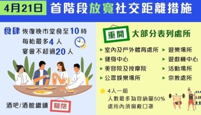 香港新聞網4月22日電 香港特區政府昨日(21日)起分階段逐步放寬社交距離措施,食肆可4人一枱,恢復晚市堂食至10時,戲院及健身房等重開。有健身業界表示,顧客反應踴躍。