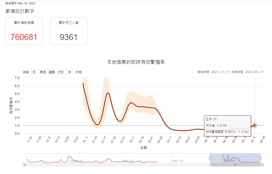 1.港大醫學院編製的“本地個案的即時有效繁殖率”,24小時內最新數值突破1,升至1.0159,代表一名患者會傳染多於一人,未來確診人數將會上升,是3月5日以來首次失守疫情受控防線。