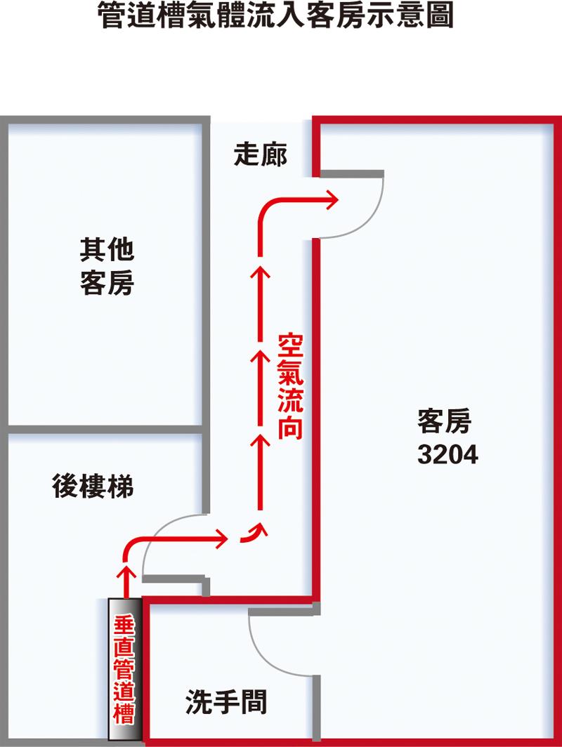 在指定時間曾到過上址的市民,均需於今日或明日進行核酸檢測。歐家榮說,兩夫婦雖然大部分時間留在家中,外出有戴口罩,但亦有脫過口罩,目前不能排除已在社區引起傳播。 中心調查又發現,該對夫妻入住的酒店樓上同坐向3304房間,有一對尼泊爾返港父子先後於5月10日及11日確診,其中一人已證實感染BA.2.12.1。經基因分析後,發現與美國返港夫婦的病毒一致,懷疑檢疫酒店內有傳播。 袁國勇昨日與衞生署、機電署等專家到該檢疫酒店調查事件。該酒店後樓梯收藏污水渠等喉管的管道槽封頂,內里空氣居然呈正壓。經煙霧測試,見到內里的空氣“很有力”地衝出來,推斷是因為熱空氣經管道上昇,形成煙囪效應,造成垂直傳播。