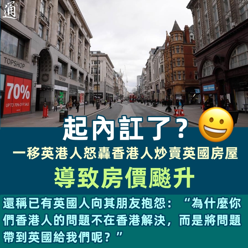 香港新聞網5月27日電 移英港人竟為英國房價上漲 “內訌”了? 日前,有移英半年的港人怒轟其他“同路人”炒賣英國房屋,導致當地房價飈升,引發罵戰。 這位移英港人在臉書發文控訴稱,不少香港人在英國購入一間自住樓後,會再買2 到3間放租,“導致英國樓價攀升”。 他強調自己不是嫉妒他人,也明白樓價攀升有多個因素,但認為港人已將香港的住屋問題帶到了英國,預言“此舉遭(英國)本地人唾棄指日可待,亦令往後移英港人成本大增。” 他還爆料在生活中,已有英國朋友向其責問,“為什麼你們香港人的問題不在港解決,而是將問題帶到英國給我們呢?” 貼文發出後隨即引發熱議。有網友認同他的觀點,直指“確實好多香港人都會(在英國)買好幾間房用來出租!” 有網友則指責該移英港人對“同路人”進行“道德綁架”:“他人合法行為,不需要被道德批判!”