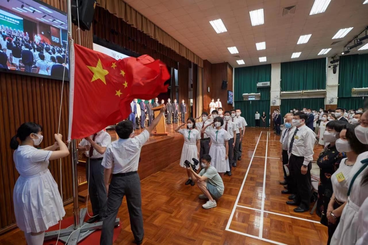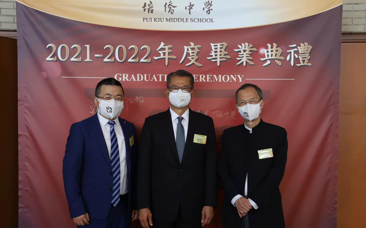 香港新聞網5月29日電 香港第五波新冠疫情緩和,培僑中學29日舉辦第74屆畢業典禮。財政司司長陳茂波、校監曾鈺成、校長伍煥傑、培僑教育機構董事會主席吳康民、香港科技大學副校長(大學拓展)汪揚、立法會議員楊永傑和培僑教育機構董事周志榮、周世耀、林友浮等出席。
