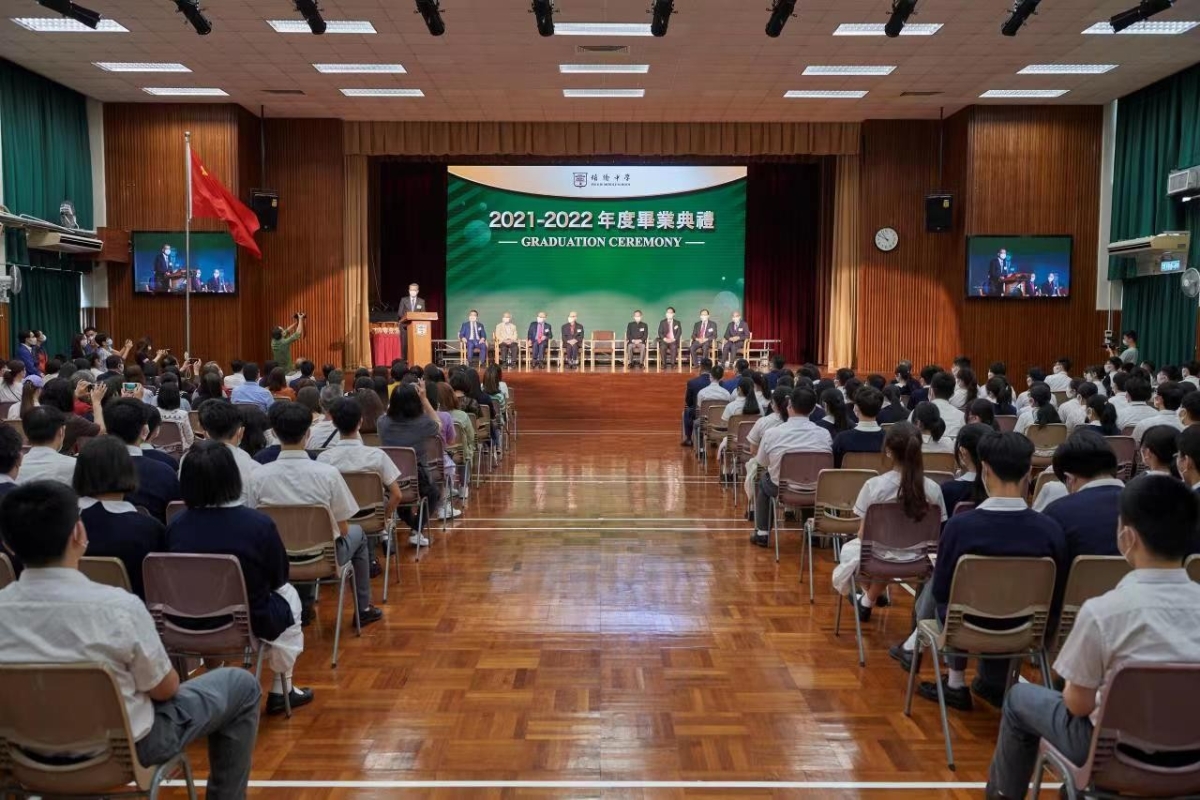 陳茂波在致辭時讚賞本屆畢業同學在過去兩年多疫情一再來襲的期間,順利完成了中學文憑考試,又以“煎炒蒸炸燘燉焗”的妙喻,指出只要努力去嘗試烹調,食物就有美味之處,藉此來鼓勵同學去努力嘗試,在追尋和實踐理想的過程中保持熱誠、努力和堅毅。 校監曾鈺成引用陳茂波曾在網誌中寫下的幾句話:“過去幾十年,香港經歷了大大小小的風雨和考驗,在祖國堅實的支持下,香港人努力拚博,靈活變通,我們克服了困難,攀上新的台階,一起走到今天。”並以此祝願畢業同學“努力拼博,靈活變通,克服困難,攀上新的台階。” 校長伍煥傑致辭時表示,本屆畢業生的三年高中生活,面對學習壓力、社會動亂、新冠疫情衝擊等挑戰,都成功戰勝考驗,完成文憑試,順利畢業,相信他們在以後的人生路上,能夠克服任何挑戰。他亦和畢業同學分享《論語》中孔子的一句:“吾不試,故藝。”勉勵同學意不要虛度光陰,要積極學習,積累更多的知識和技能,才能更進一步去接受機遇,一旦機遇一到,平時所學就能派上用場。