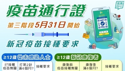 “疫苗通行證”第三階段今實施分享到: