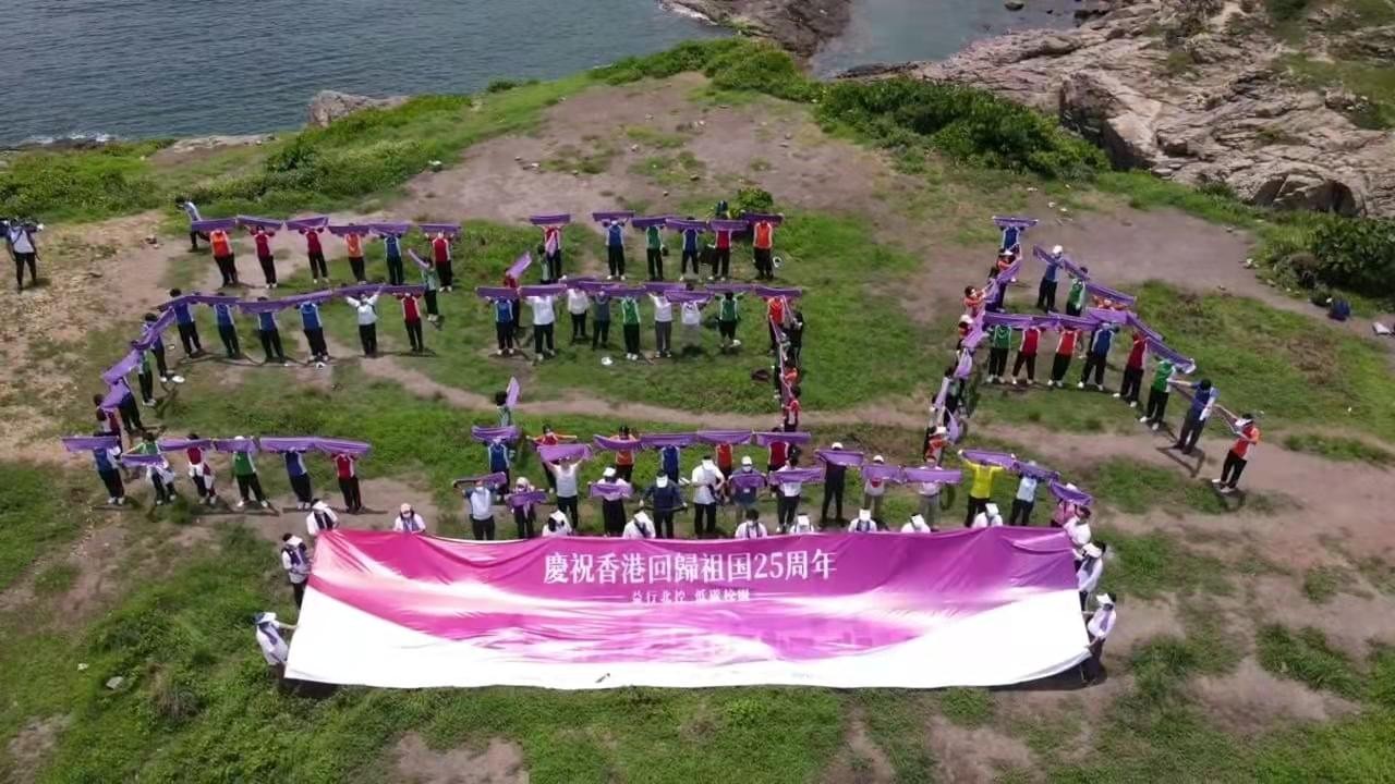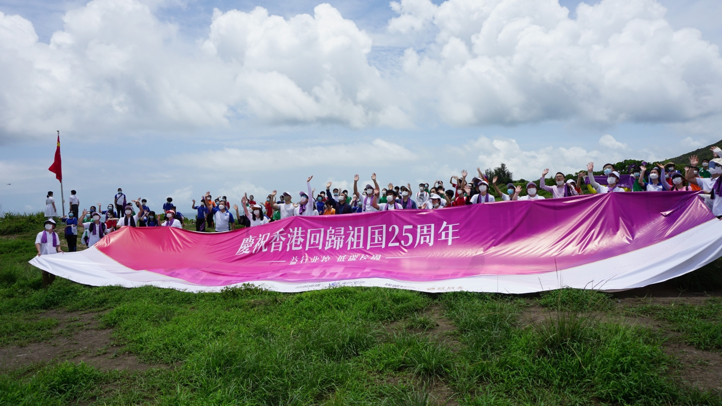 7月1日是香港回歸祖國25周年,進行環保活動之餘,培僑中學特地自帶旗桿和國旗,在東龍島上進行一次史無前例升國旗奏唱國歌儀式,這應該也是東龍島上第一次升起五星紅旗。擔心海島上風力太大,還臨時縮短了旗桿,三位升旗手一次練習就掌握好升旗的時間,同學們十分興奮。 此次活動的初衷是為了培養青年學生的愛國情懷,也希望能夠在香港做出更有愛國有意義的舉動。這不僅僅是一次簡單的升旗儀式,也是培僑人和北控人送給香港回歸25周年的一份紀念禮物。 近百位師生更集合力堆砌出一個特別的隊形組成2、5、A的字樣,就是25th Anniversary, 25周年的簡寫,祝賀香港回歸25周年。