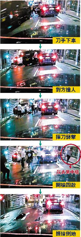 疑販毒分贓不勻,香港兩黑幫鬧市火併開槍香港中環雲鹹街昨晨(6月10日)發生了一起近年罕見的黑幫火併開槍案。 據悉,涉事兩黑幫系為爭奪毒品市場,各自招攬“南亞兵團”在街頭以刀槍廝殺;其中,一批最少8個南亞刀手包圍對手的私家車施襲時,疑對方早有準備,開槍還擊及開車撞人突圍。 警方接報趕至調查,當場截獲包括3名傷者在內的6名大漢,其中一人腹部中彈。 6月10日深夜,香港警方部署大規模反黑行動,在蘭桂坊針對黑幫的不法勾結展開大掃蕩。 香港警務處有組織罪案及三合會調查科當天表示,已掌握兩黑幫所有涉案者資料,正全力追緝槍手及尋找涉案的手槍。