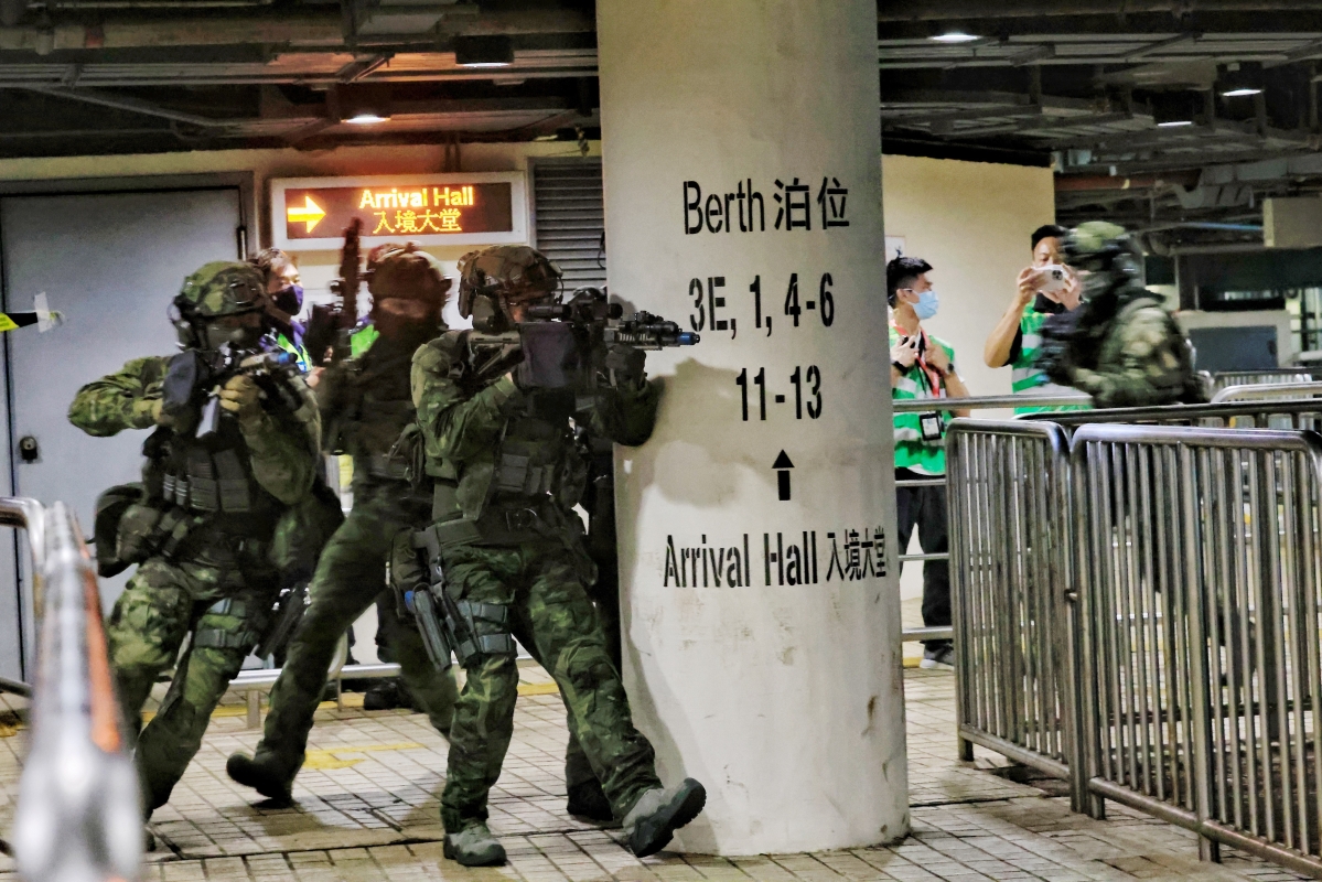 香港新聞網6月11日電 (記者謝光磊 許其皓)香港警務處聯同消防處及海事處,於6月8日至10日,分別在油塘港鐵站、東岸公園一帶、青馬觀景台、及尖沙咀中國客運碼頭,進行跨部門反恐演習,以加強各部門在大型行動中的協調合作,以及在事故中的應變能力。演習模擬有恐佈襲擊發生,恐怖分子進行無差別襲擊,導致多人受傷。演習期間,警方聯同各部門作出快速應變、拯救受影響市民、封鎖現場、搜集線索、並以情報主導方式成功瓦解本土恐怖組織。