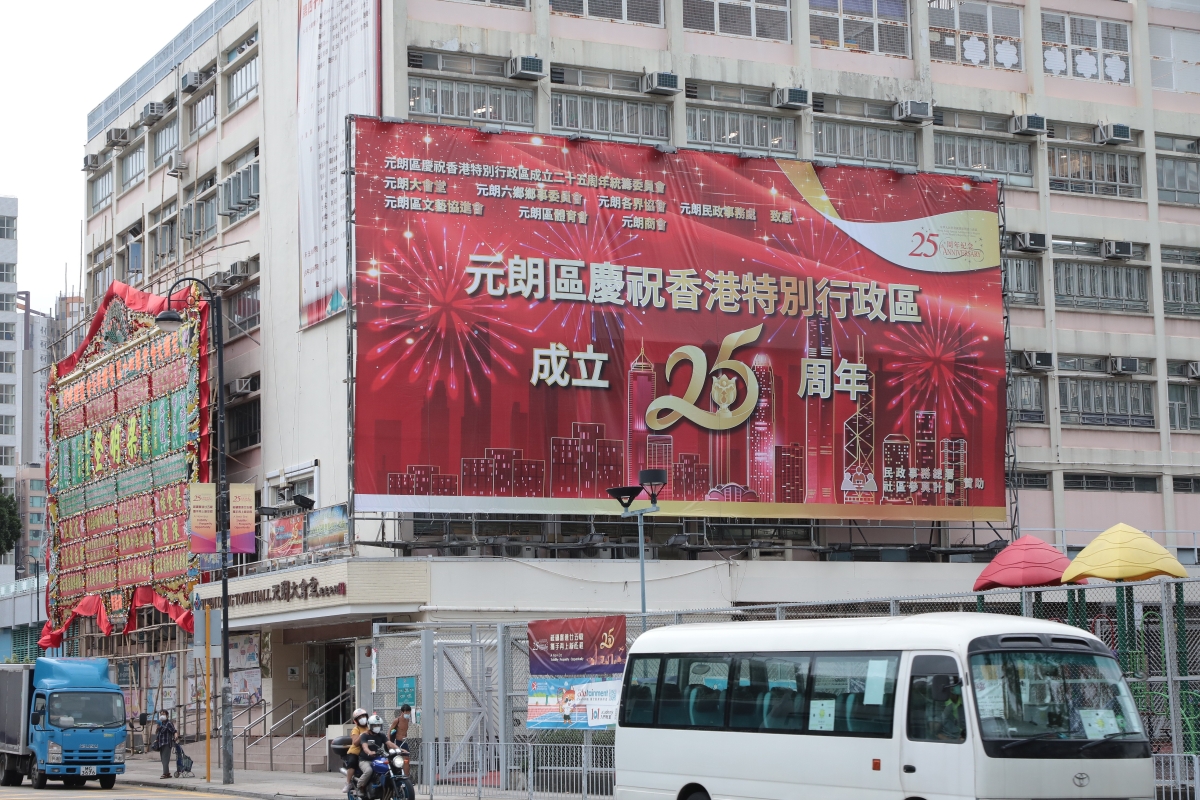 香港元朗區設置“慶祝香港特區成立25周年”花牌和宣傳條幅