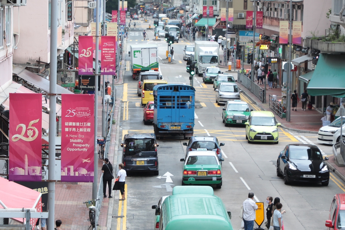 大型花牌標語“慶祝香港特區成立25周年”。