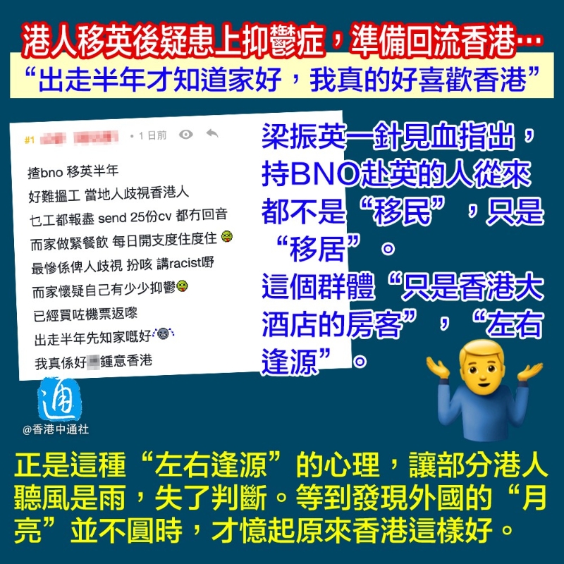 港人移英後疑患上抑鬱症,準備回流香港…分享到:
