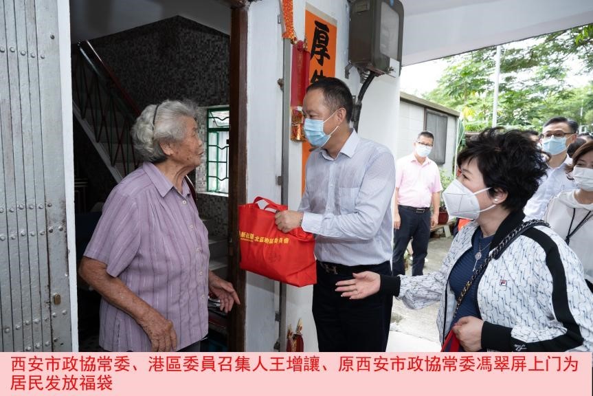 西安市政協常委、港區委員召集人王增讓,新社聯北區地區委員會主席溫和輝,立法會議員陳月明、陳沛良,仁愛堂第四十三屆董事局主席鄭慧賢,驪山公司副總經理王曉斌,香港大埔區民政事務署常務副主席牟彤和11位港區政協委員共46人一同參加啟動禮,一起為北區寮屋、劏房戶及困難戶派發福袋、面對面為鄉親們送去祝福和關愛。