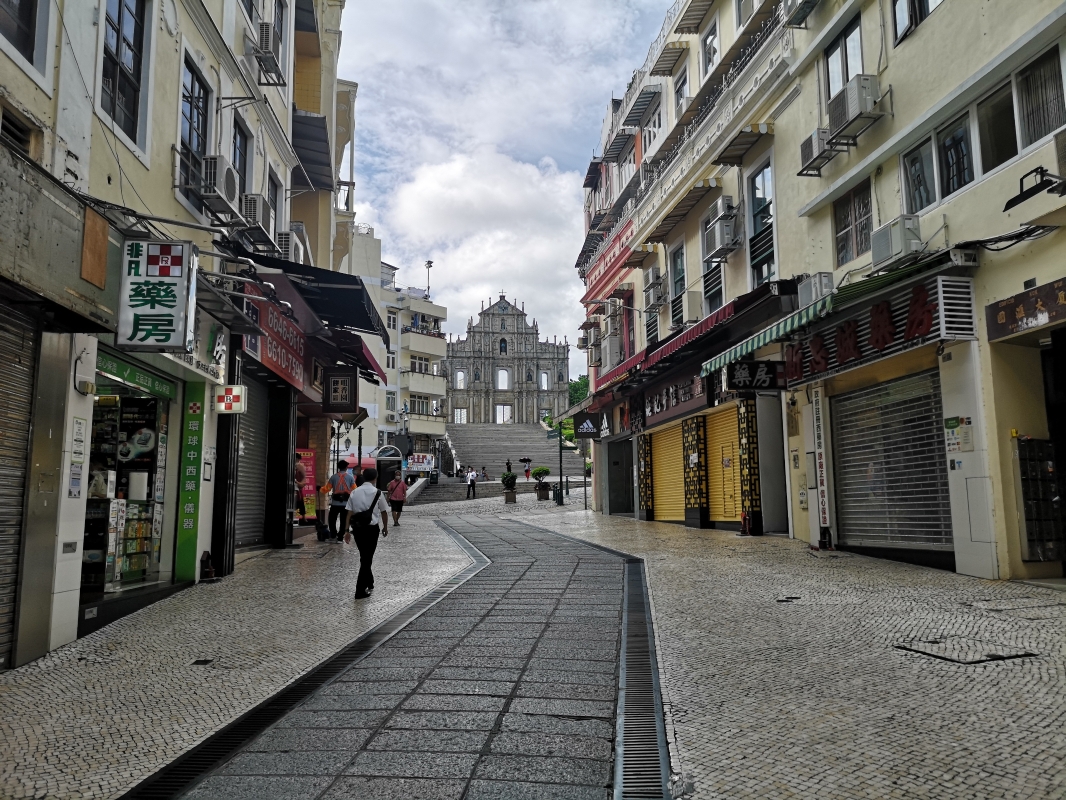 澳門景點大三巴附近遊人寥寥無幾(鄭國威 攝)
