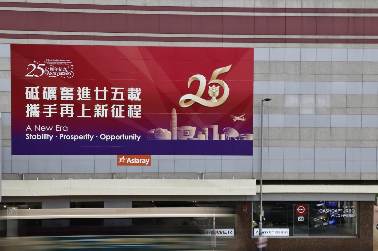 香港新聞網6月23日電 (記者 曹文毓)香港回歸25周年倒計時,紅火的氣氛從街頭的每個岔路口交匯而來,綻放出港人的歡呼。