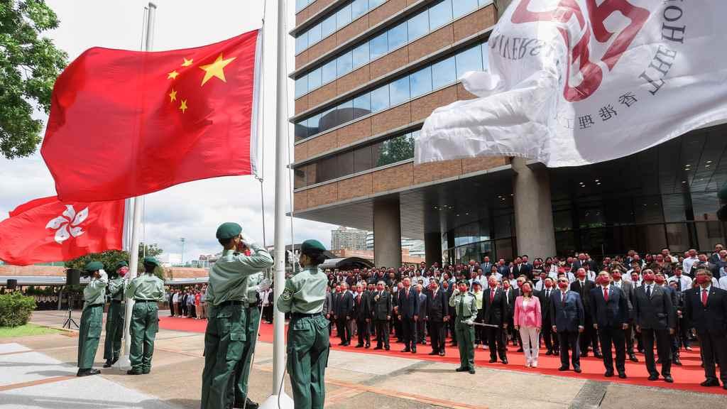 香港理工大學於7月1日在校內舉辦升國旗儀式。圖源:香港理工大學網站 理大校董會副主席李國祥、大學顧問委員會主席顏吳余英,聯同理大一眾管理層,以及師生、校友等一同出席升旗儀式。 當日上午十時正,參加升旗活動的師生穿上正裝以示重視,並戴著繪有國旗、香港特區區旗的深紅色口罩。儀式開始時,旗手邁著鏗鏘有力的步伐護送國旗、香港特區區旗以及理大校旗入場。 《義勇軍進行曲》奏響,近千名師生莊嚴肅立,注視著五星紅旗冉冉升起。儀式結束時現場掌聲雷動,每個人都難掩感動、自豪神情。 理大校長滕錦光表示,今年是香港回歸祖國25周年的歷史時刻,亦是理大85周年校慶的重要日子。回望過去85載發展歷程,理大一直致力回應社會發展需要。未來理大同仁會繼續上下一心,與香港各界一起再上新征程。 理大賽馬會社會創新設計院總監淩嘉勤對香港中通社記者表示,看到很多之前的同事都回來出席升旗禮,感覺到大家的團結齊心。每次升旗自己都有參與,並會跟著一起唱。雖然香港回歸後經歷了許多“不平坦”,但大家都非常努力,做出了很多成績,祝願香港明天更好。 畢業50多年的香港“居屋之父”、房屋協會前任主席鄔滿海每次都堅持參加校內升旗禮。他對記者說,香港回歸後與內地的合作發展很不錯,希望未來國家跟香港關係更密切,一起進步。作為專研房屋的從業者,他表示見證25年來,香港住房發展正在一步步改善。 此次升旗儀式由香港青少年軍旗隊的9位升旗手和1位指揮員負責。指揮員吳同學亦是香港理工大學中國文化專業大四學生,她對當選是次活動感到很榮幸。她說,未來作為中國青年,希望能講好國家故事,祝願祖國和香港“新篇章走出新的繁榮道路”。 盡管當天是公眾假期,仍有很多家長帶著小朋友前來。其中一位年僅2歲半的男童,穿著印有“中國”字樣的紅色短袖上衣,一直跟著音樂揮手。 他的母親王女士說:“觀看這次升旗禮的感覺特別不一樣,因國家領導人也在香港跟我們一起慶祝,意義更非凡!”今天帶兒子來,希望讓他感受到這個氛圍,對國旗國歌有肅穆感、對國家有歸屬感,“親身經歷比口頭教育意義更大。” 升旗禮結束後,許多學生擠滿了最接近升旗區的位置,拍照留念。 姜同學說,雖然早上有預告有台風,但就算淋雨也要堅持來。林同學笑稱,自己是工科學生,可能沒有好句子表達激動心情,但衷心希望香港越走越好。 【編輯:馬華】