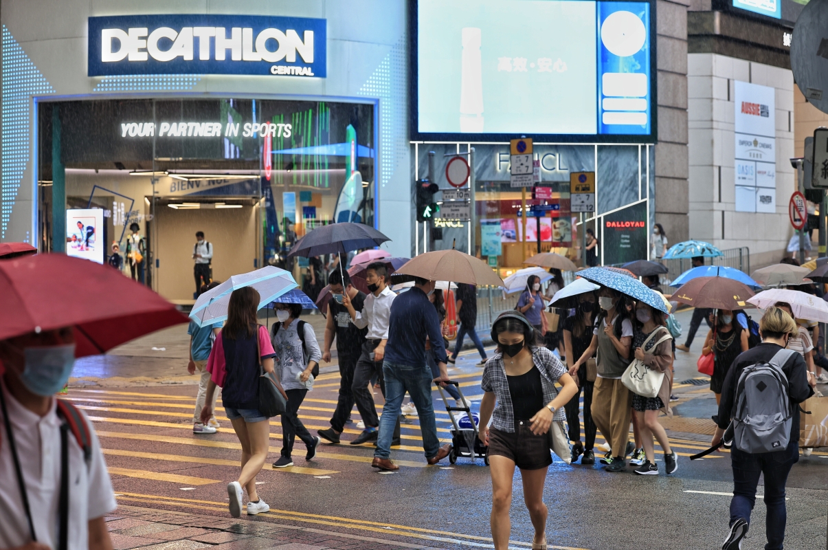 香港新聞網7月3日電(記者 曹文毓) 近日,香港天氣陰晴不定,天文台多次發佈風球戒備信號。7月3日,風球戒備信號降至一號,正值周日,市民紛紛外出休閒,城市再度歡愉起來。