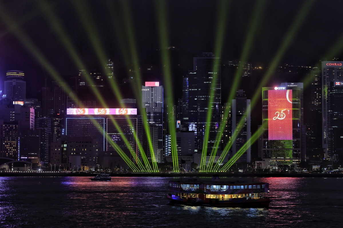 “幻彩詠香江”特別版之“維港光影匯演”如期上演。