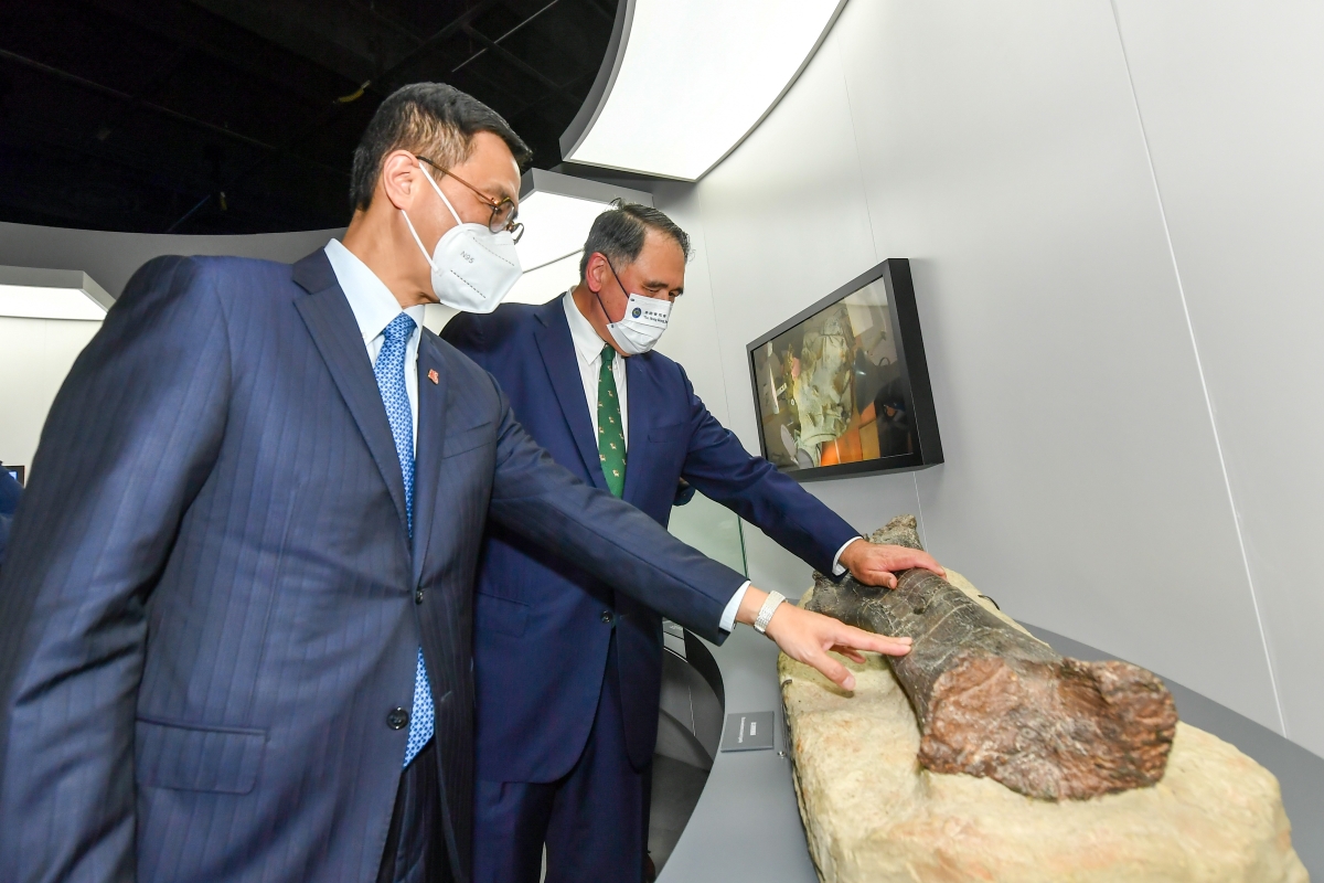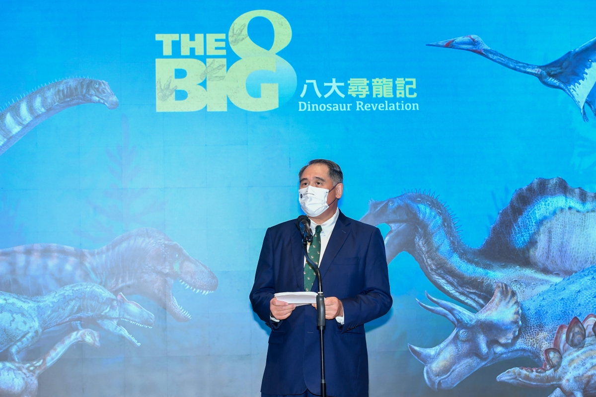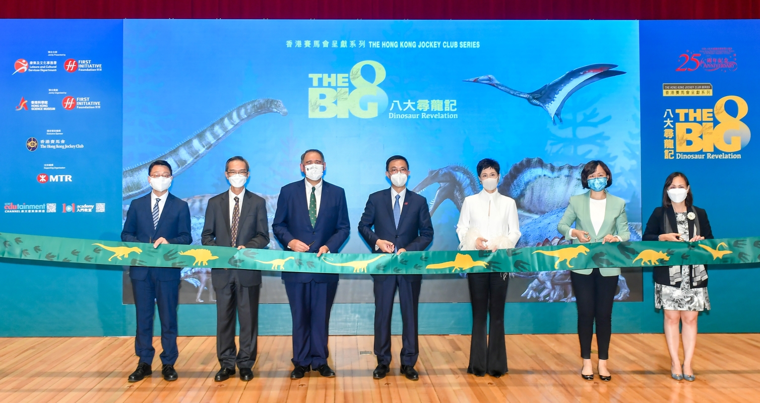 馬會董事黃嘉純(左三)陪同香港特別行政區文化體育及旅遊局局長楊潤雄(中)、康樂及文化事務署署長劉明光(左一)、博物館諮詢委員會主席黃遠輝(左二)、香港科學館總館長陳淑文(右一)以及一眾嘉賓出席“香港賽馬會呈獻系列:八大‧尋龍記”開幕禮。 馬會董事黃嘉純7月5日陪同香港特別行政區文化體育及旅遊局局長楊潤雄、康樂及文化事務署署長劉明光、博物館諮詢委員會主席黃遠輝、香港科學館總館長陳淑文以及一眾嘉賓為展覽開幕禮揭幕。 “香港賽馬會呈獻系列”自2012年推出以來不斷為廣大市民帶來不同地區和時代的世界級珍品。馬會董事黃嘉純表示:“馬會一直不遺餘力地推動藝術、文化及保育發展,銳意為香港注入藝術文化活力,豐富生活,推動創意共融。期望這次展覽能為大家分享古生物學的最新科研成果;並藉着多元化的教育活動,啟發我們關注氣候變化和生物物種減少等全球議題。”