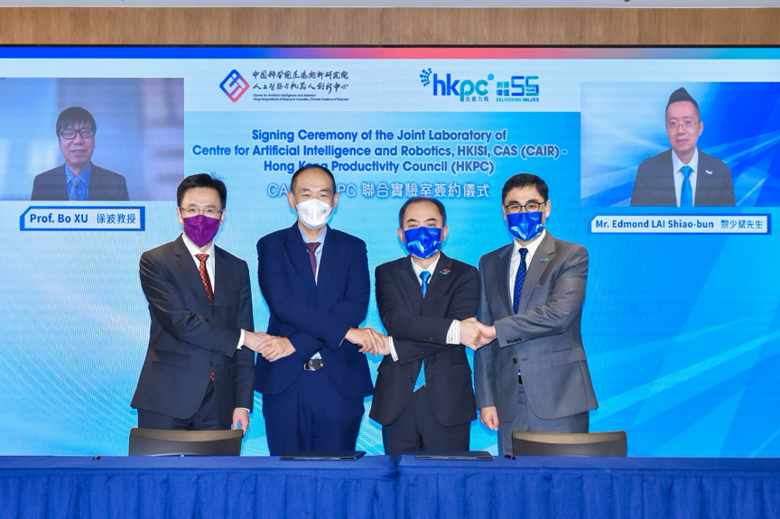 在CAIR-HKPC簽約儀式環節,創新科技及工業局局長孫東、創新中心主任兼中科院自動化所所長徐波、創新中心執行副主任劉宏斌、生產力局總裁畢堅文、生產力局首席數碼總監黎少斌和生產力局機械人及人工智能部總經理葛明等共同出席簽約儀式。劉宏斌博與葛明代表雙方簽署了合作協議。 孫東表示,中科院香港創研院人工智能與機器人創新中心和香港生產力促進局今天能夠走到一起進行深度合作,是個良好開端和重要突破,衷心希望今後的合作能夠走向更大的成功。他對香港科技發展充滿信心。他說,“香港距離國家期望我們建立的國際創新科技中心尚有一定發展空間,也是我們下一步前進的動力。我們要做頂層設計的考慮,創新中心和生產力局的成功合作任重道遠,期待在不久的將來看到雙方更輝煌的成就。” 徐波對與生產力局結為合作夥伴表示欣喜。他指出,“中科院香港創研院人工智能與機器人創新中心與生產力促進局的成功牽手,是充分結合創新中心的領先技術和生產力局耕耘多年的為香港政府及本地企業的服務經驗。作為建設和發展定位為國際一流新型研發機構、吸引國際高端人才創新的高地以及科技創新合作交流的樞紐,創新中心將堅定不移地貫徹實施創新驅動發展戰略。 時下正值香港發展創新科技的新契機,人工智能與機器人創新中心將圍繞新一代人工智能基礎理論、新型人機交互技術、面向健康的先進機器人技術、跨模態人工智能開放平台技術等方面加強自身科研實力,強化產學研創新協同,堅定創新自信,瞄準世界科技前沿,著力攻克關鍵核心技術,為把我國建設成為世界科技強國作出貢獻。”