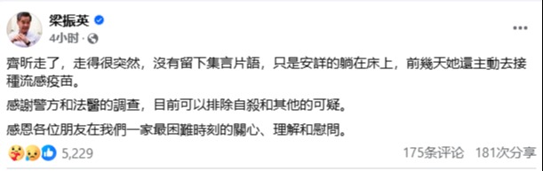 香港新聞網7月10日電 大埔一名33歲魏姓女子疑無法接受丈夫9日晚踢球猝死,10日在大埔昌運中心寓所留下遺書,上吊身亡。消息指,該名女子為內地人,與34歲陳姓丈夫結婚僅3個月,二人居昌運中心一單位。 昨晚9時許,魏女的丈夫相約朋友到大埔運頭角遊樂場足球場踢球,下場不久後突然昏迷暈倒,被送往大埔那打素醫院搶救,最終不治。魏女知道後,難以接受,痛不欲生,遂留下遺書上吊。內容指丈夫離世令她頓失生命方向。事件由死者丈夫哥哥及大嫂揭發,二人9日晚送魏女回家後,家中大門沒有上鎖。10日早哥哥前往探望,發現魏女於衛生間內用尼龍繩上吊自殺身亡。 警方表示,早上9時許,警方接獲報案,指一名33歲姓魏女子於昌運中心的寓所內,以尼龍繩上吊,救援人員到場調查,發現女事主當場死亡,警方於現場檢獲遺書,死因有待驗屍後確定。(完) 【編輯:張明臻】
