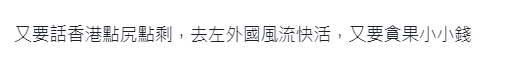 “去到外國就做外國人啦,怎麼整天想著香港的福利……要懂得融入白人社會啊。”談到錢,“手足”也不講情面!在討論區內,不少“留港黃絲”紛紛嘲笑該“跑路者”:“去國外風流快活,還要貪這點小錢。”