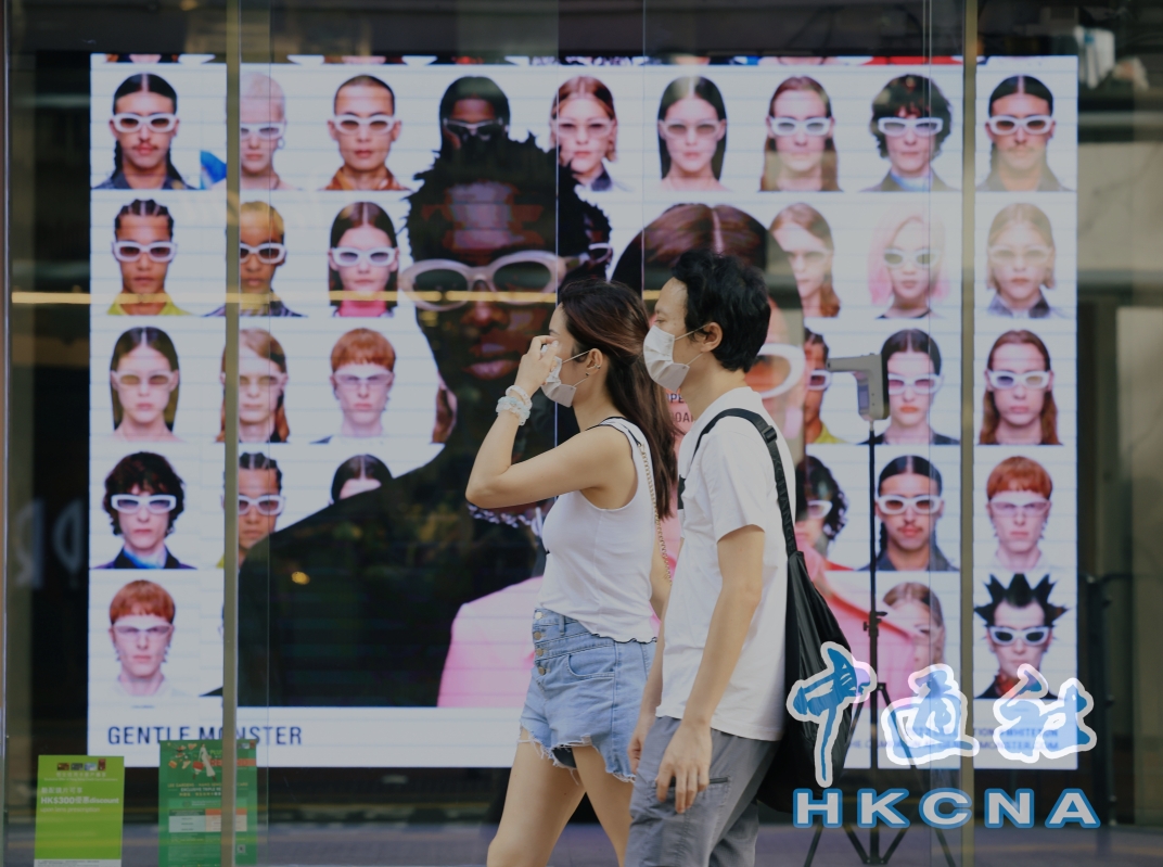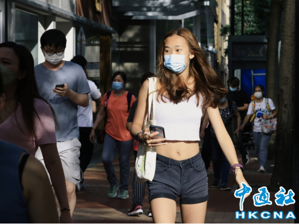 市民穿著清涼出行。 此外,香港疫情近日反復,加上天氣酷熱,給市民出行帶來憂慮。