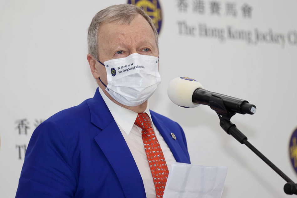 香港賽馬會行政總裁應家柏會見記者 馬會今季舉行了88個賽馬日。全季合共上演了836場賽事及281場越洋轉播賽事,而投注額再刷新紀錄,逾1400億港元,較2020/2021年度馬季上升3%。博彩稅總額高達141億港元,較上季增加2.8%。馬季煞科日總投注額則達20.39億港元。 馬會行政總裁應家柏表示,香港人的“我做得到”精神一直是的營運核心,感謝所有賽馬參與者的付出,令賽事能夠繼續舉行。全賴他們與馬會員工同心合力,加上我們的新型冠狀病毒檢測措施及嚴謹的追蹤系統,我們才能在必須保持社交距離以保障市民健康和福祉的情況下,為數以十萬計的馬迷提供精彩的家中娛樂。