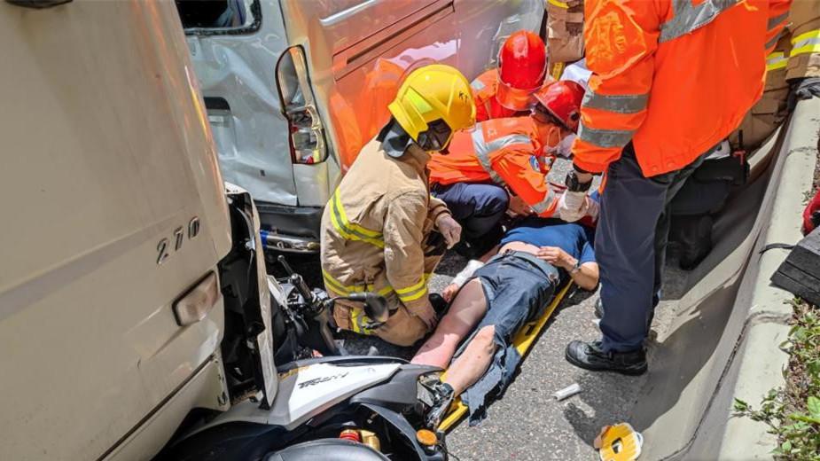 發生意外後,男子負傷自行爬出,女乘客則陷入昏迷,消防員和救護員到場將女乘客救出,送院搶救後,中午12時25分證實不治,警方在現場封路進行調查,電單車尾箱飛墮路面,客貨車和貨車均受損毀,貨車司機其後協助警方調查,受意外影響,現場交通一度受阻近兩小時。(完) 【編輯:崔靜雯】