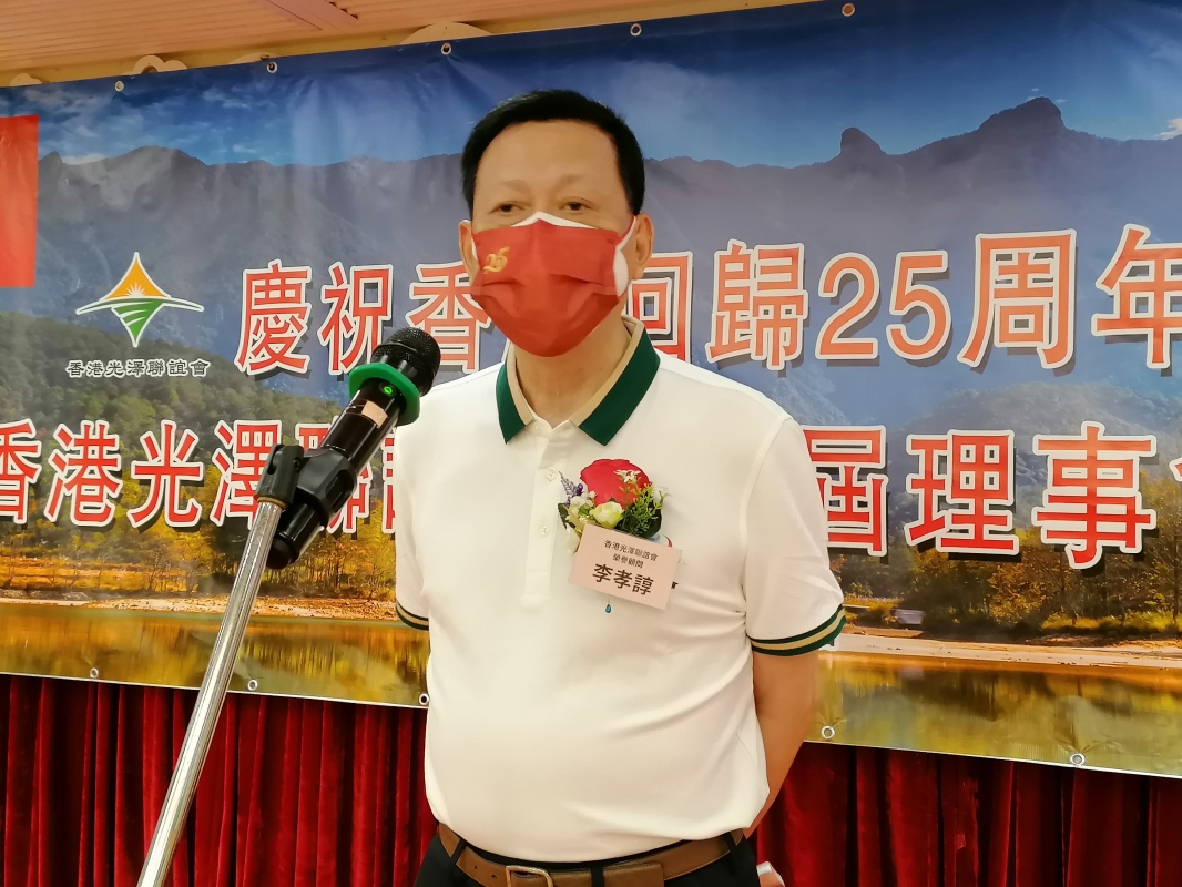 香港光澤聯誼會慶祝香港回歸祖國25周年暨第一屇理事會成立大會。 香港光澤聯誼會在註冊成立後,積極配合香港南平聯誼總會,參與了立法會選舉、抗疫防疫、慶祝中國共產黨成立一百週年等社會活動。 他說,今晚是一次凝聚鄉情、交流感情、群英聯誼的盛會,在此讓我們一起祝福偉大的祖國繁榮昌盛,祝福家鄉更加發展和進步,祝願一國兩制行穩致遠,香港明天一定會更好! 香港南平聯誼總會會長王大治在書面講話中,對香港光澤聯誼會的成立和嚴義松榮任首屆會長,表示熱烈祝賀。他說,香港光澤聯誼會的成立,是香港南平聯誼總會興旺發展的又一標誌。他相信,在嚴義鬆會長領導和鄉親們共同努力下,香港光澤聯誼會一定會凝心聚力,攜手奮進,譜寫出愛國愛港愛鄉的新篇章。