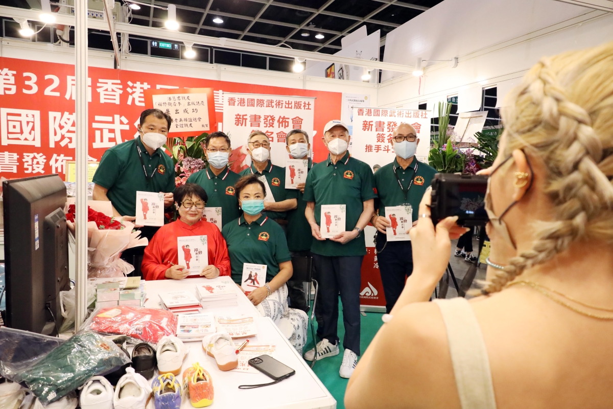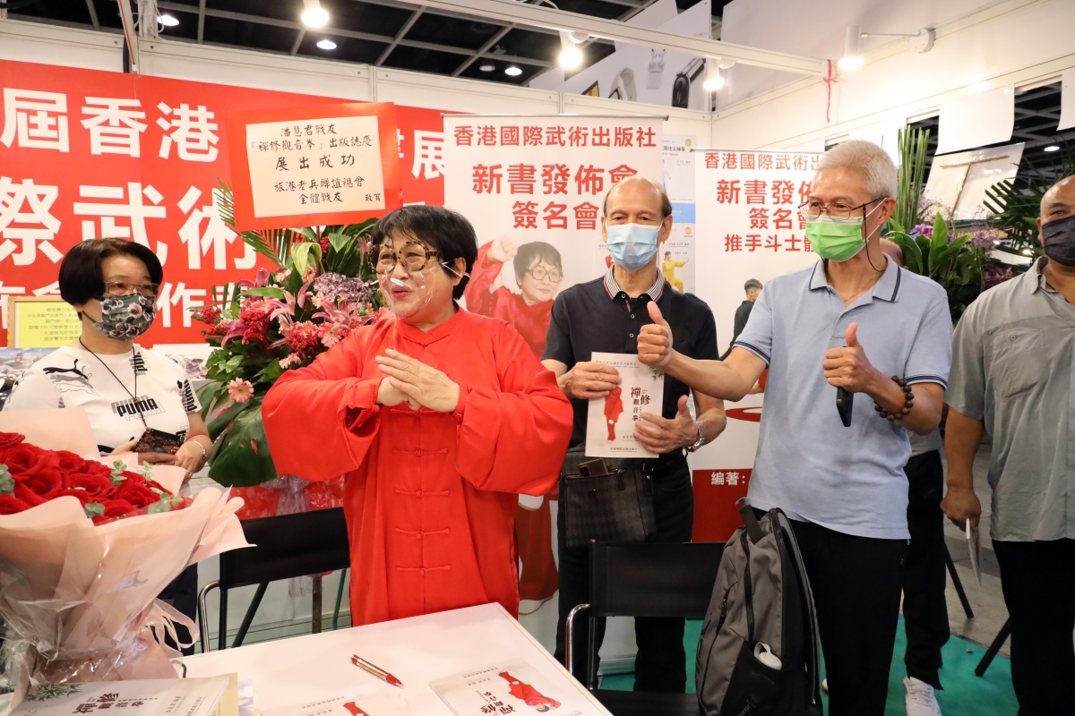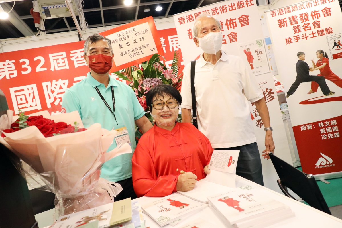 香港國際武術總會、香港國際武術出版社主席冷先鋒(左)與潘慧君在現場簽名會。