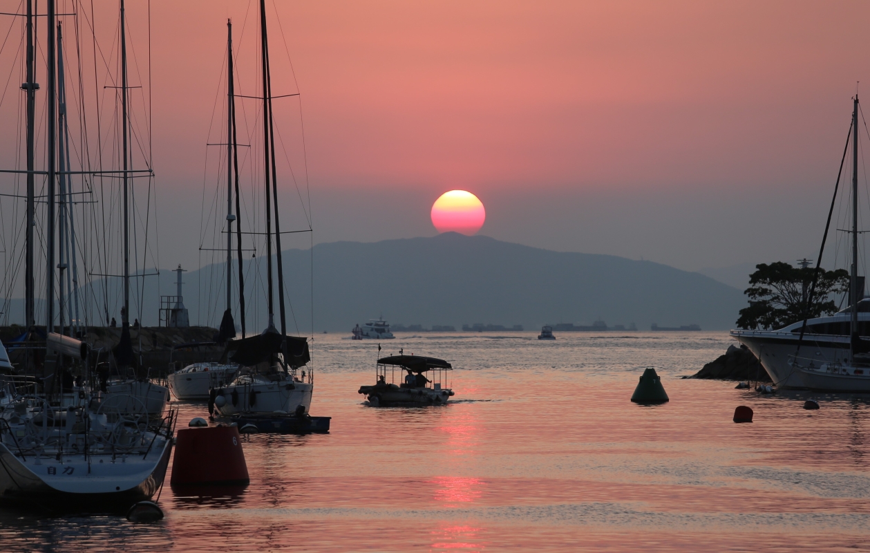 銅鑼灣避風塘的落日餘暉。