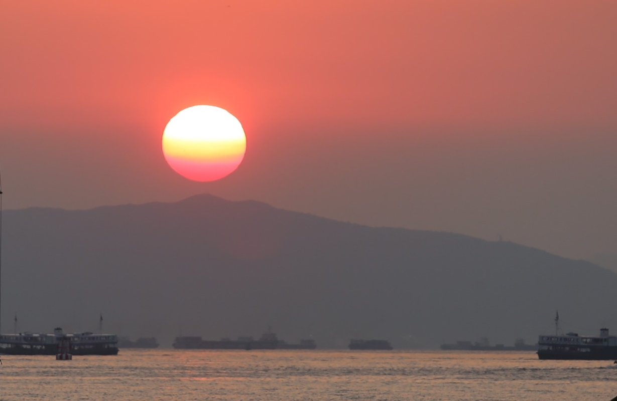 夕陽在西區與尖沙咀之間徐徐落下。