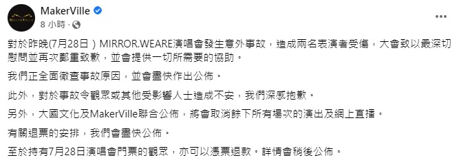 【MIRROR演唱會發生意外】舞蹈員腦出血頸椎骨折仍留ICU分享到: