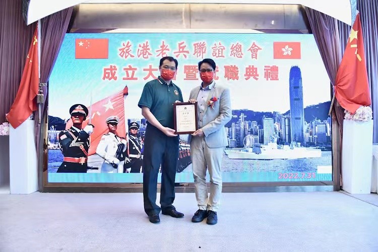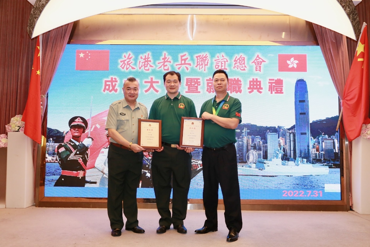 立法會議員鄧家彪(右)執行會長兼秘書長戴軍。 大會在嘹亮的國歌聲中開始,立法會議員鄧家彪致辭,他在講話中提到八一南昌起義打響第一槍到解放軍成立已95周年。中國人民解放軍是中國共產黨締造的人民軍隊,英雄的人民軍隊為民族獨立、人民解放、國家富強建立了不朽功勳。特別是老兵,你們為維護國家主權、安全、世界和平與安寧付出了英勇的貢獻。在此八一建軍節到來之際向老兵致以崇高敬意。香港回歸25年來,社會也經歷了很多,隨著國安法成功在香港落實,香港社會又走向正軌,維護一國兩制,能讓兩製成功實踐行穩致遠。與愛國愛港的團體分不開,繼續發揮革命軍人本色,在不同崗位發光發熱。 前特區政府保安局保安主任、深圳市平凡英雄基金會名譽主席李喬奇、民建聯社區主任陳崇文分別發言中提到新一屆特區政府開啟新征程,老兵也是祖國最可敬的人,讓我們這些可敬人在一國兩制下的香港,在不同的工作崗位服務社會。 創會會長施建國提到旅港老兵聯誼總會成員主要都是已退役老兵,都來自不同地方,有的參加過抗美援朝、抗美援越、對越自衛反擊戰的老戰士,為保家衛國,祖國的安寧、保護人民生命財產流血流汗做出了巨大貢獻。現在雖然已退役,但是還保持本色,在社會不同領域實現自我價值。不忘初心, 牢記使命,建成一個堅定的愛港團體。 大會上委任了總會架構人員並邀請主禮嘉賓頒發了委任狀,新任會長吳瑞康並發言提出了總會新的方向。慶祝活動上還安排了豐富多彩的文藝節目。