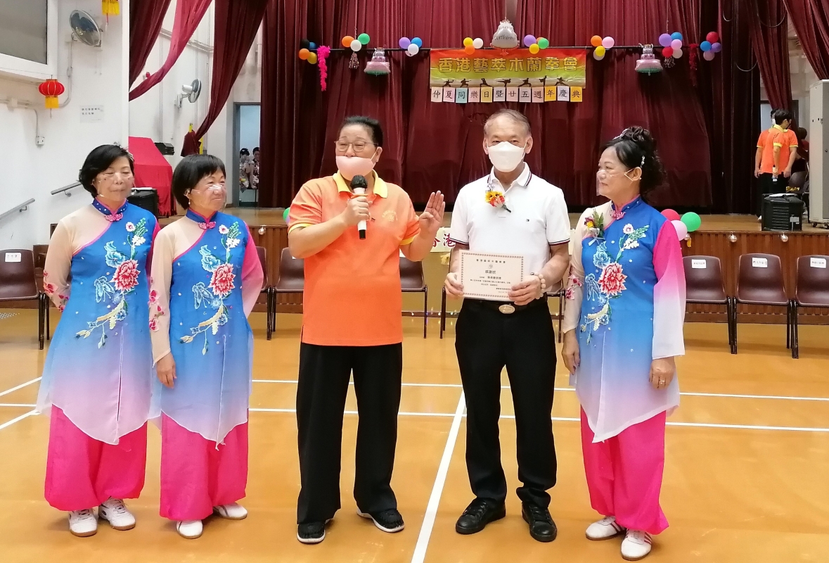 新聞新聞網8月1日電 香港藝萃木蘭拳會7月31在顯徑社區會堂舉辦“香港藝萃木蘭拳會25週年同樂日”,與特區成立25週年同慶。當天,邀請香港武術界多位名人包括:國家非物質文化遺產“五祖拳”傳承人蔡長慶師傳、武術家陳靂師傳、譚德番師傳、麥瑞芳師傳、馮少瓊師傳、藝萃木蘭拳會張偉群教練等團體和個人百餘人出席。 香港藝萃木蘭拳會創會會長劉德坴坴 ,習武始自1989年,曾跟隨多位名師研習太極拳及木蘭拳。於1997年創立藝萃木蘭拳會,以互助、互愛精神,積極推廣木蘭拳及各類健康運動。多年來,劉德坴坴不斷的開拓會務。除舉辦多項太極及木蘭拳訓練班外,更經常帶領會員參與在香港不同地區舉辦之活動和演出,亦曾多次組隊到內地和國外參加武術比賽及匯演,受到廣泛好評。 劉德坴坴表示,希望疫情放緩,繼續推廣健康養身,團結各界精英,致力將太極拳、木蘭拳這些有益身心健康的武術項目發揚光大。 同樂日匯演除了武術項目外,有歌舞表演,節目精彩紛呈,在歡歌笑語中圓滿結束。