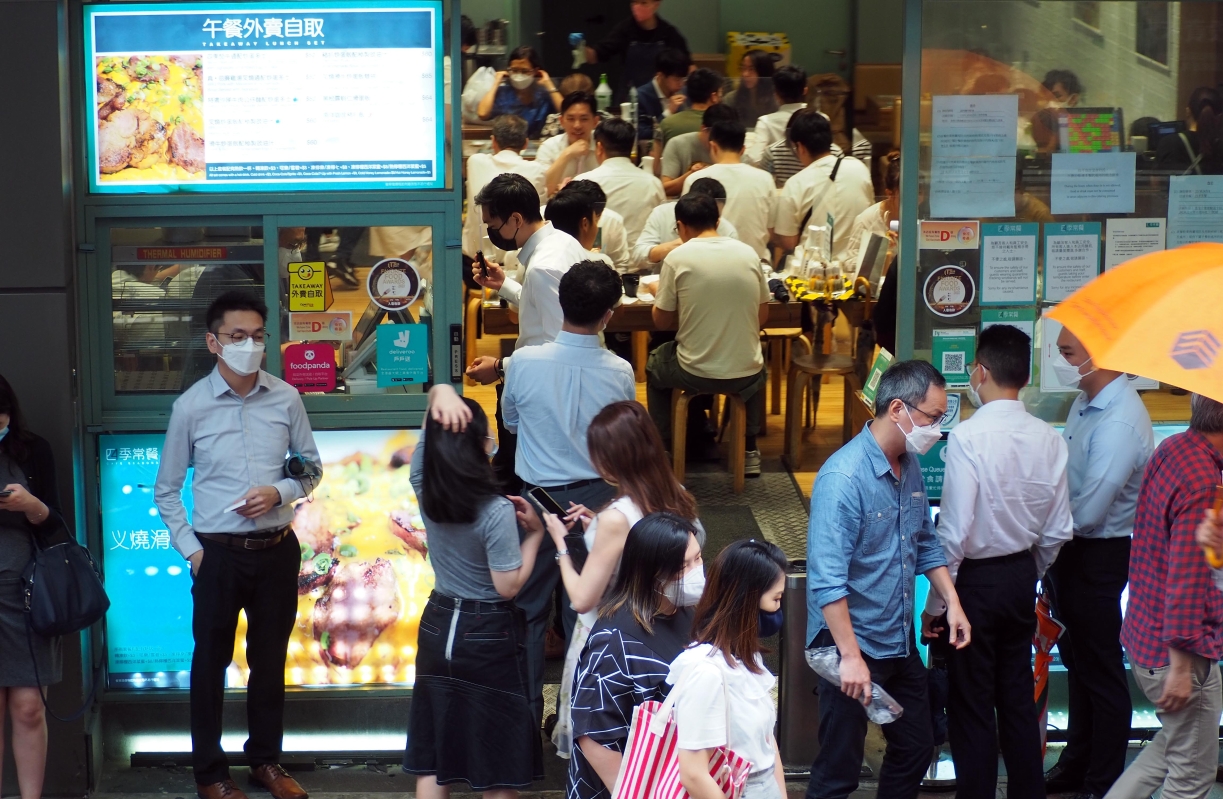 圖為午間大批市民如常到餐廳輪候午膳。
