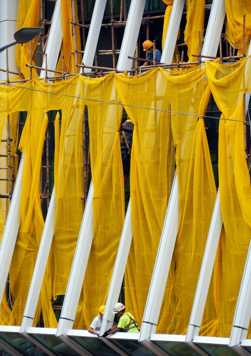 工人在商廈做好防範風暴安全措施。 (完) 【編輯:洪少葵】