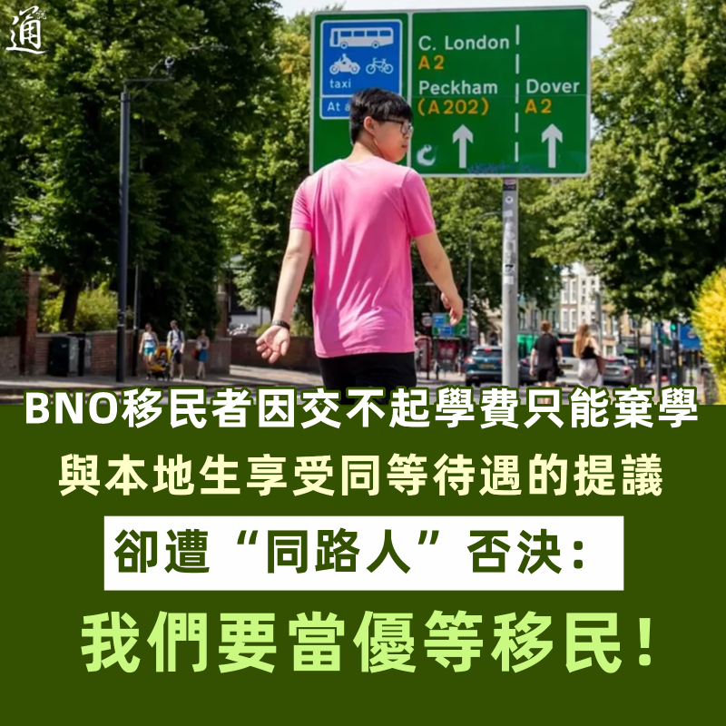 深知無力繳付大學學費,李家俊報讀了多個法律系課程,盼能透過獲取獎學金升學。不過他的獎學金申請也被拒了。 下一步怎麼辦?李家俊說,若無法讀大學,“可能先工作吧......做待應......藍領工作......或者建築工作”,希望5年後有足夠儲蓄入讀大學。 而若留在香港升學,李家俊或可憑藉特區政府的資助順利完成學業,但在英國,BNO這個尷尬的身份讓他只能另尋出路。 對於移英港生窘境,有聲音呼籲給予BNO港人本地學費資格,宣稱“英國不應用高昂學費阻礙香港學生更好地貢獻英國社會”。沒想到的是,一群移英“同路人”竟先跳出來大聲反對。 “我們香港人移居到那裡,還沒有正式為這個國家或社會作出貢獻, 也未開始繳稅,沒有資格享有本地生優待。”這些“同路人”為了成為英國人眼中的“較優秀移民”,不想惹英國社會討厭,直指給予香港BNO移民英國本地生學費的做法不妥—— “我不想香港人到了英國後,會被英國人覺得,你們這些香港人來到就討好處。” 受新冠疫情及俄烏衝突等因素影響,英國經濟下行嚴重,通脹指數攀升,民眾生活日益艱難。為了“吸金”,英國政府再放寬BNO申請條件。在新規下,1997年後出生的合資格港人將可獨自申請。 這引發了一些英國民眾不滿,在有關消息的推特評論區內,有英國網友直指,“英國人口已經嚴重過剩,社會結構亦已嚴重撕裂”,強調英國是時候對移民緊閉大門了。 或許是眼見英國社會對移民的態度越來越“不友好”,因此,給予香港BNO移民優惠的提議再被拿出來討論後,一些“事不關己”的移英港人立刻跳出來反對。 這些人試圖向英國社會解釋自己是“優質移民”、是來英國“做貢獻”的,急哄哄地將自己與難民區別開來。 對此,有香港網友一針見血地諷刺:“當你淪落到乞求人家收留的地步,還想找機會自我誇讚一番,比較誰高質、誰低質,說實話,其實挺難看的!” 【編輯:李泺】