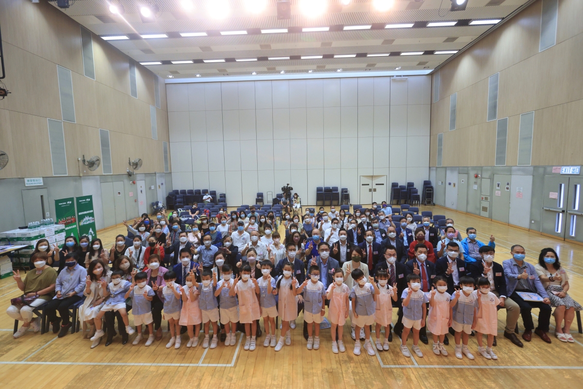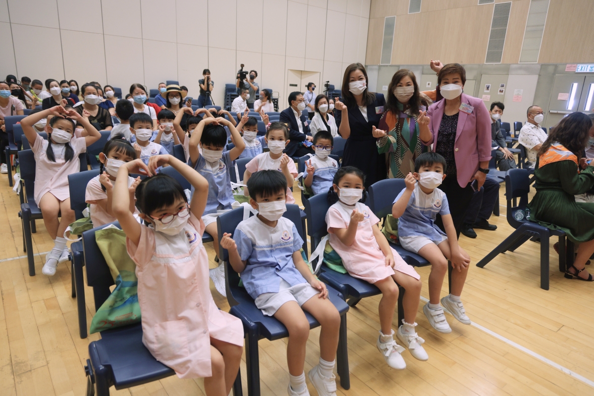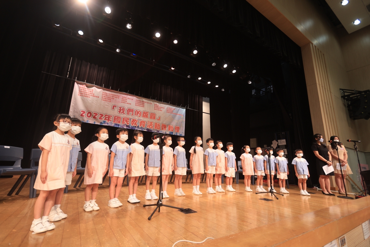 東華三院馬陳景霞幼稚園的學生在啟動禮上領唱中華人民共和國國歌