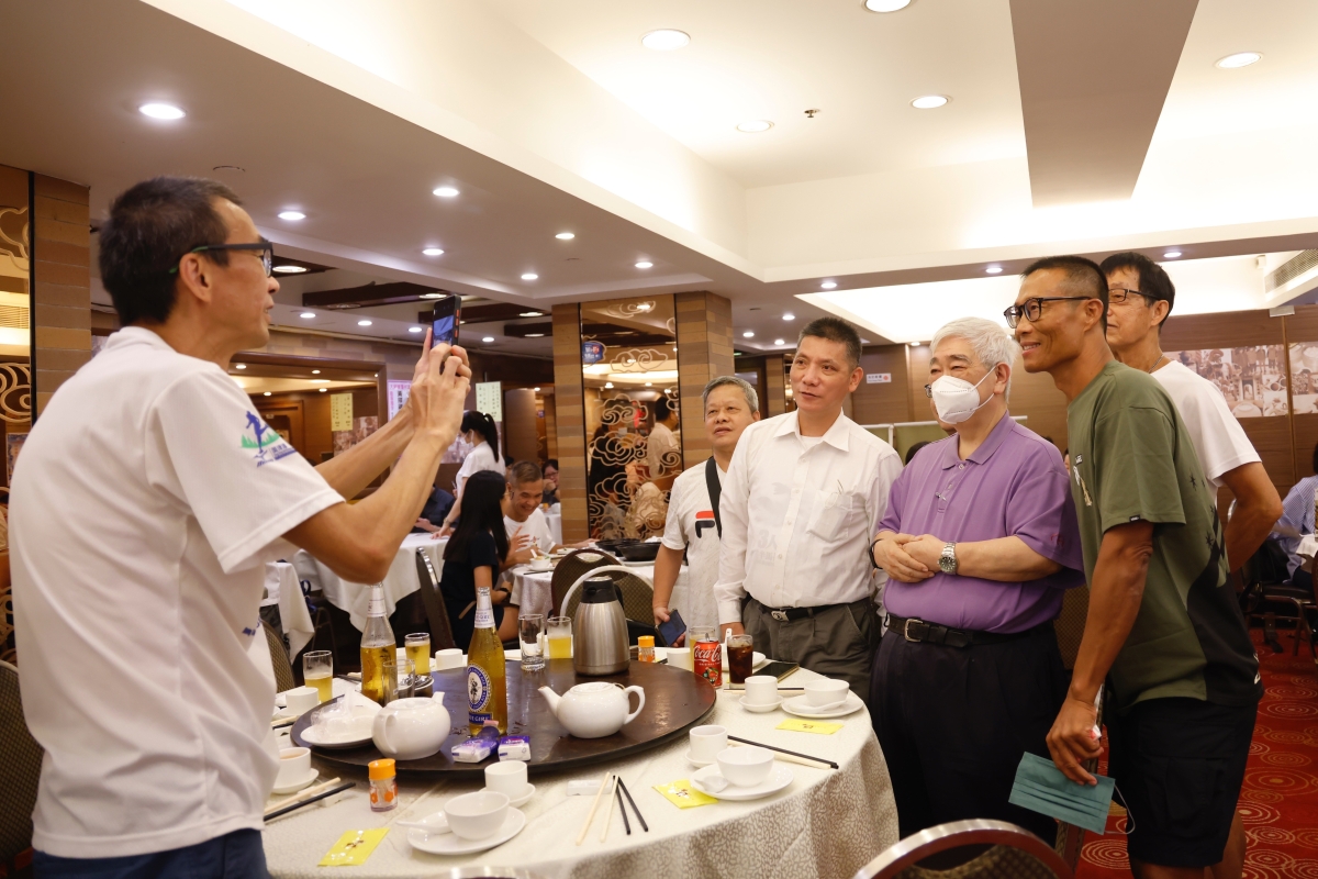 食客與大榮華圍村菜主理人梁文韜(中)合影。