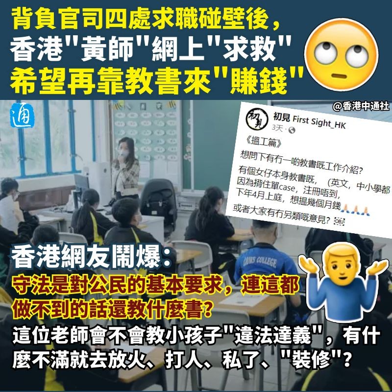 香港新聞網8月23日電 香港國安法實施後,社會整體恢復平靜,部分失德教師亦被清理出校園。但令人沒想到的是,這些“黃師”背負官司四處求職碰壁後,又把心思放到了“教書育人”上。近日,有人就厚著臉皮在網上“求救”,希望再靠教書來“賺錢”…… “黃店”“初見First Sight_HK”日前在社交媒體發出一篇關於“找工作”的貼文,問網友“有沒有教書的工作介紹?” 貼文聲稱,有個女生本身是老師,可教中、小學學生的英文,但“因為背著單case(官司),註冊不到(教席)”,又向“手足”賣慘,稱這位“老師”明年4月還要上庭,想要賺幾個月錢。