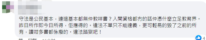 香港中通社 製圖 貼文一出,隨即被香港網友鬧爆!有網友在留言區質問該教師身上背的是什麼官司?聯想到香港“黃師”過往種種惡劣行徑,該網友更直接開懟:“(這位老師)會不會教小孩子‘違法達義’,有什麼不滿就去放火、打人、私了、‘裝修(打砸)’?”