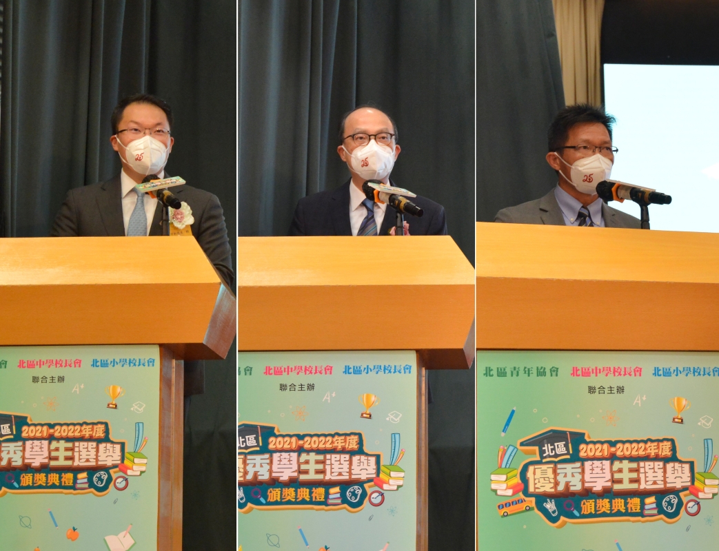 主辦機構之一北區青年協會主席廖宇軒致辭時指出,習主席對香港青年發展及科技創新工作高度重視,並鼓勵得獎同學積極對接“國家創新驅動發展戰略”需求,將香港及國家建設成全球科技創新高地。 在近年疫情影響下,北區中學校長會主席方奕亮校長指,學生需更具自律性,抗拒不同的引誘。方校長寄望同學能懷著感恩的心,即使面對巨大的生活壓力亦能一一克服,邁向成功。 北區小學校長會主席朱偉林校長強調同學更需要堅守正確的價值觀,成為有國家觀念、國際視野及對社會及國家有承擔精神的新一代。
