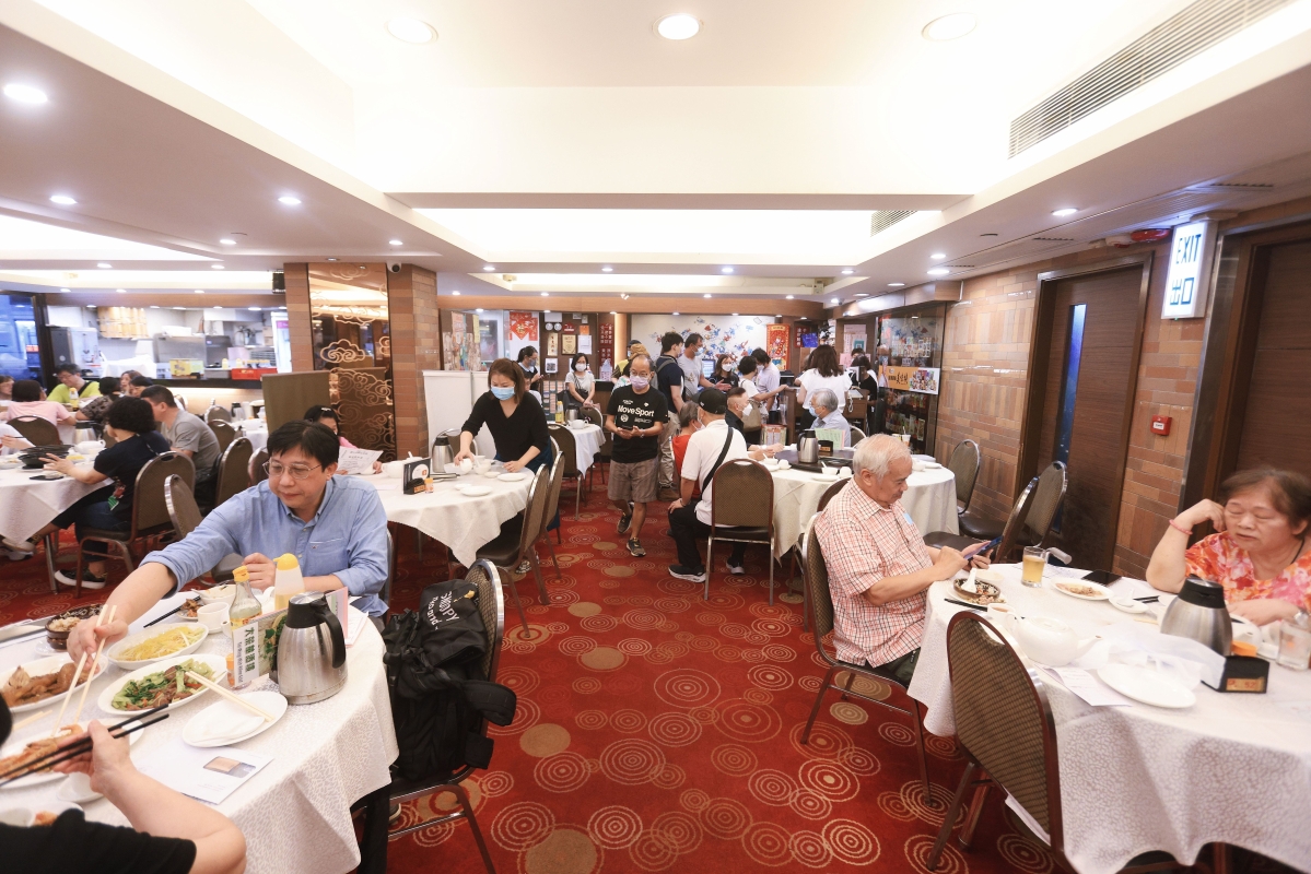 圍村菜菜品多樣。 灣仔大榮華的堂食設於二樓。結業在即,下午5時30分,已有不少市民排隊取票等待叫號,接近7時,隊伍已經從二樓入口順著樓梯排到地面。一壺茶,一份報紙,三兩點心,氤氳著茶樓光景,但傳統中式酒樓終究難敵經濟的不景氣,中式餐館2020年與2019年相比總收益以數量計下跌38.8%,梁文韜看來,灣仔大榮華失去大量遊客後,只靠茶市和午市的市民支持,很難經營下去。