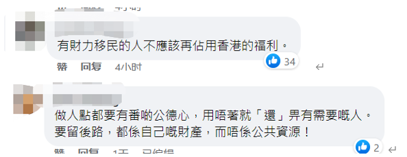公屋是香港特區政府給予低收入港人的福利,離開香港自然要交還。因此,港府隨後要求收回有關公屋單位,並要求他們於9月前遷出。 在貼文中,移民者不僅不反省自己“食兩家茶禮”的自私行為,反而抱怨港府“斷人後路”,又“賣慘”稱現在只能依靠在港親戚協助清理屋內物品。 根據香港房屋委員會規定,倘若租戶“丟空單位(或逾三個月非經常持續居於單位)”屬於濫用公屋行為,如租戶被證實濫用公屋,房屋署有權不給予警告,直接終止其租約。 可見,港府收回移民人士的公屋合情合理! 不少網友也紛紛留言力撐政府做法,並指責移民者濫用公屋的行為自私! 有網友批評:“有財力移民的人不應該再佔用香港的福利”,“做人都要有公德心,用不著(公屋)就還給有需要的人。要留後路,也是留自己的財產,而不是公共資源!”