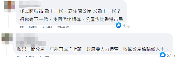 網友評論 也有網友嘲諷“黃絲”言行盡顯雙標及自私——“移民時說是為了下一代,霸佔公屋又是為了下一代?” “政府要大力追查(類似情況),收回公屋給輪候人士!”還有網友看到該移民者的所作所為後,呼籲政府嚴查移民者濫用公屋的情況,以造福還在苦等公屋的留港市民。