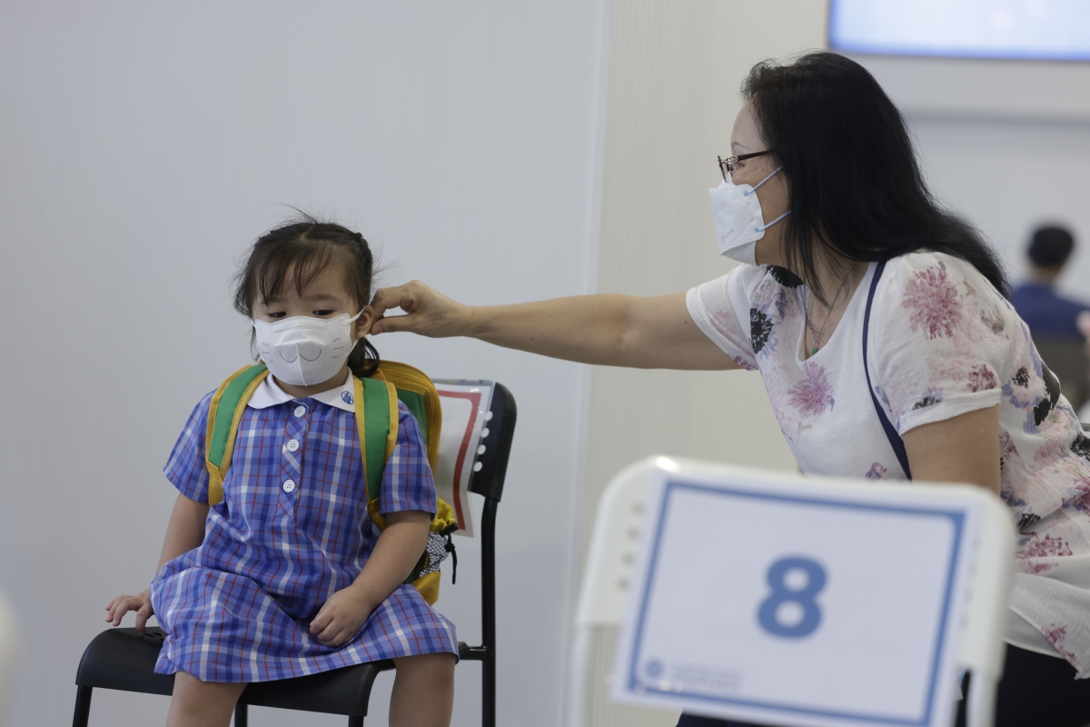 香港新聞網9月1日電(記者 曹文毓) 9月1日,香港首批“私家診所新冠疫苗接種站”投入服務,為市民提供免費的科興和複必泰疫苗接種服務。位於銅鑼灣的一家私家診所新冠疫苗接種站的工作人員對記者表示,下午時段前來接種的市民居多,但當日上午已可在現場見到不少長者以及兒童前來接種疫苗。