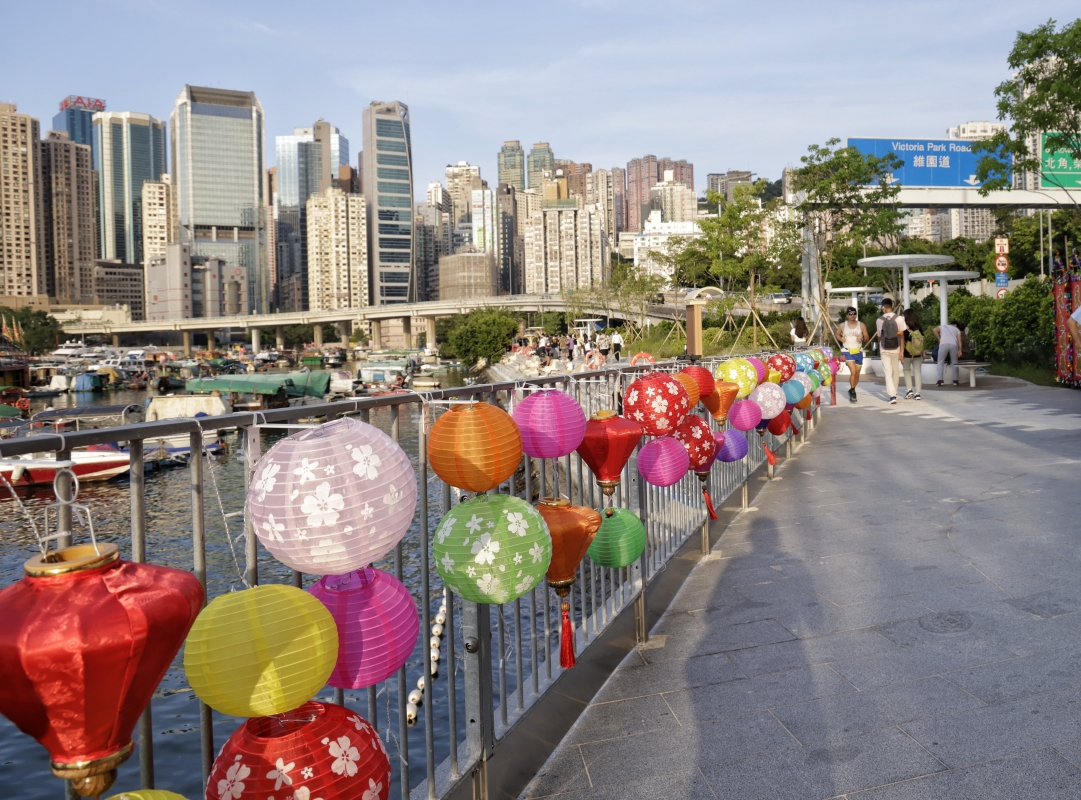 香港新聞網9月2日電(記者 曹文毓)位於香港維園道銅鑼灣避風塘海濱的活化工程經已竣工,今年內落成的重點項目之一“活力避風塘主題區”將於中秋節前“迎月”(9月9日) 正式向公眾開放,維園道附近的海濱長廊優化并引進嶄新的“海岸堤階”,拉近公眾和水體的距離,為市民提供一個富有避風塘特色的全新海濱共享空間。 9月2日,迎著落日,“活力避風塘主題區”舉辦開幕儀式。“活力避風塘主題區”面積約 10900平方米、長約715 米,毗鄰銅鑼灣避風塘,是2019年底完成的“灣仔北及北角海濱城市設計研究”下建議發展的海濱長廊之一,主題區還提供一條長約90米的“海岸堤階”,采用完全無欄杆的梯級式沿岸設計,讓市民可無阻隔地欣賞避風塘及維港日落景致。 除了活化現有涼亭、座椅、天橋底等地方,更大量增加有遮陰的坐位,中秋節還將同時加設特色小食亭及假日市集,售賣各種香港懷舊小食。